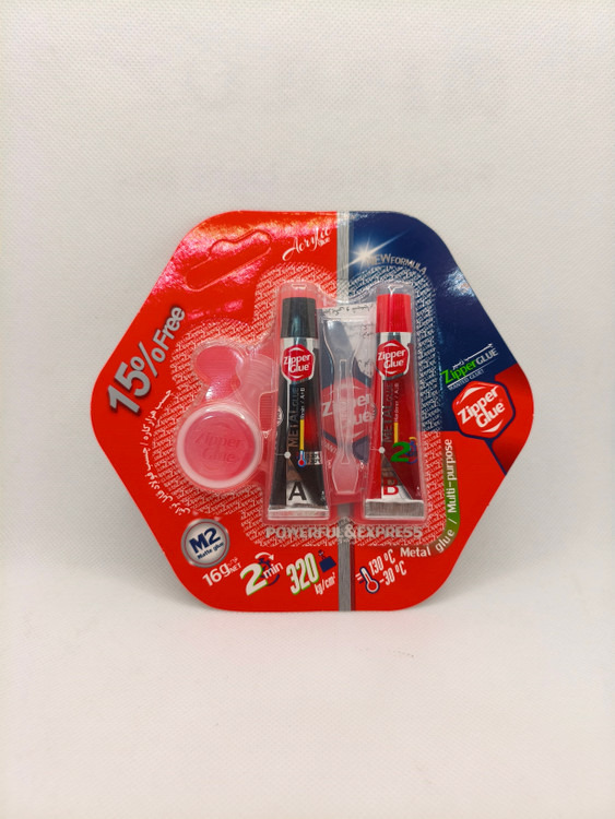 چسب دوقلو زیپر نوعی چسب اپوکسی دو جزئی (مایع و سختکننده) است که برای چسباندن و ترمیم قطعات فلزی و غیرفلزی، مانند قطعات خودرو، لوازم خانگی، و صنعتی با استحکام بالا به کار میرود. این چسب مقاومت بالایی در برابر حرارت (مثلاً ۳۰- تا ۱۳۵ درجه سانتیگراد)، کشش (حتی ۴۲۰ کیلوگرم بر سانتیمتر مربع)، مواد شیمیایی، آب، و رطوبت دارد. چسب دوقلو زیپر پس از خشک شدن تراشپذیر و قابل رنگآمیزی است و در مدلهای شفاف (برای قطعات شیشهای و ظریف) و مات (هزارکاره) عرضه میشود.